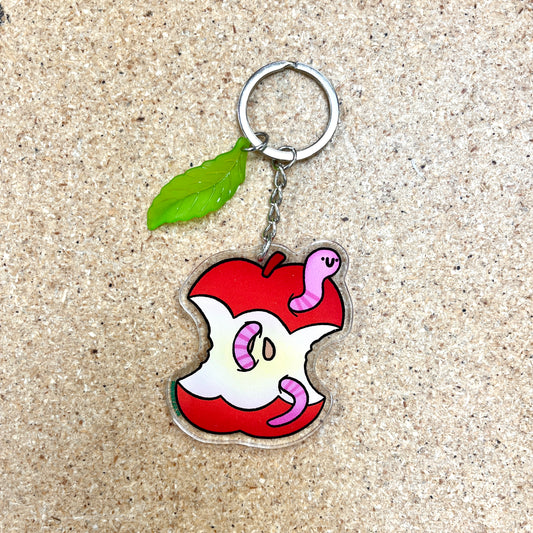 Apple & Worm Keychain
