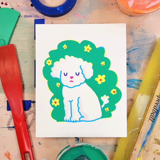 Sleepy Flower Field Pup Mini Print