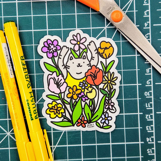 Rainbow Flowers Cat Pride Vinyl Sticker