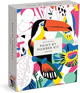 The Kitty McCall Toucan Paint By Number Kit from Galison includes line-drawing floral art on canvas from Nigerian-born, UK-based artist, Kitty McCall. This paint by numbers piece is designed for anyone to replicate McCall's stunning artwork. Influenced by the natural world around her, along with the vibrant landscape of her early childhood in Nigeria, Kitty McCall has developed a signature style of bold colors, overlaid patterns, and shapes to create geometric designs and floral landscapesfor interiors, and accessories.